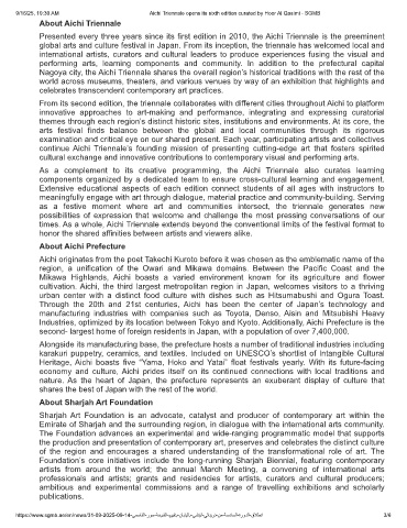 9/16/25, 10:30 AM Aichi Triennale opens its sixth edition curated by Hoor Al Qasimi - SGMB