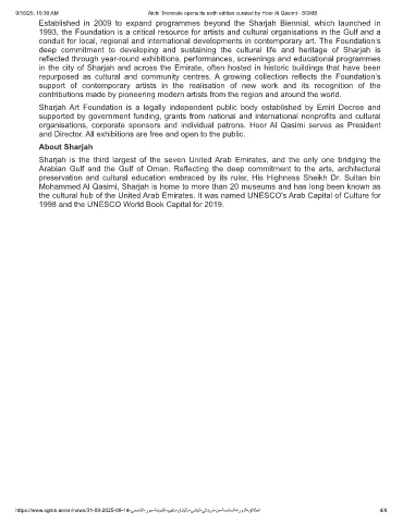 Sharjah Art Foundation is a legally independent public body established by Emiri Decree and