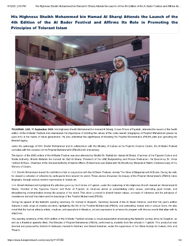 9/12/25, 2:45 PM His Highness Sheikh Mohammed bin Hamad Al Sharqi Attends the Launch of the 4th Edition of the Al Bader Festival and Affirms Its…