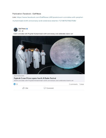 Publication: Facebook – Gulf News Link: https://www.facebook.com/GulfNews.UAE/posts/event-coincides-with-prophet- muhammads-birth-anniversary-and-celebrates-islamic-/1219975376827506/