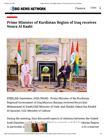 9/10/25, 2:37 PM Prime Minister of Kurdistan Region of Iraq receives Noura Al Kaabi
