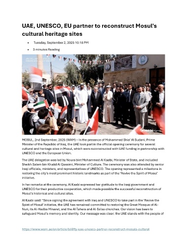 safeguard Mosul’s memory and identity. Our message was clear: the UAE stands with the people of