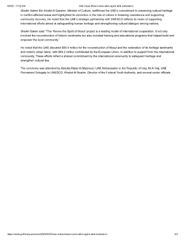 9/9/25, 11:52 AM UAE helps Mosul come alive again with restoration