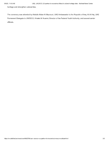https://en.aletihad.ae/news/uae/4602769/uae--unesco--eu-partner-to-reconstruct-mosul-s-cultural-heri 3/3