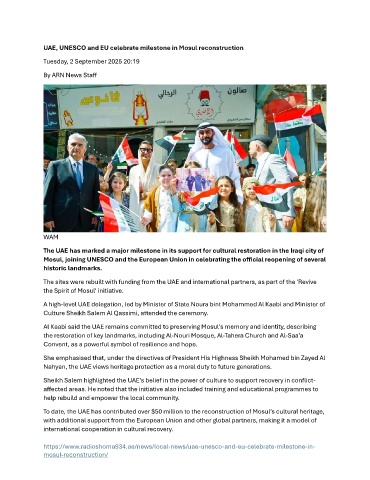 UAE, UNESCO and EU celebrate milestone in Mosul reconstruction