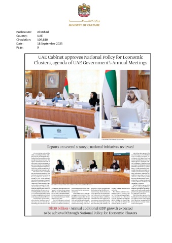 Publication: Al Etihad Country: UAE Circulation: 109,640 Date: 18 September 2025 Page: 9