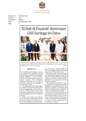 Publication: The Gulf Time Country: UAE Circulation: 60,000 Date: 17 September 2025 Page: 3