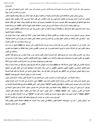 يد وﺟ ﻰﻟإ لﻘﺗﻧاو ﺔﻗرﺎﺷﻟا ةرﺎﻣإ ﻲﻓ "2016" مﺎﻋ مﯾﻗأ يذﻟاو "بﯾﻐﻣﻟا ﻲﻓ نﺎﺳﻣﺷ :ﺞﯾرﺟ لﯾﻠﺧو ﺎﻣوﺗ ﻲﺟﺎﺣ ﺎﻧاوﺟ"و "2022 -2021"