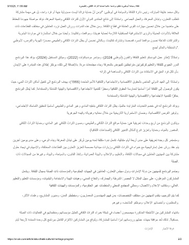 9/16/25, 11:09 AM «ﻲﻌﯾﺑطﻟاو ﻲﻓﺎﻘﺛﻟا ثارﺗﻟا ﺔﯾﺎﻣﺣﻟ ﺎﯾﻣﻟﺎﻋ ﺎﺟﻣﺎﻧرﺑ ﻖﻠطﺗ «ﻲﺑظوﺑأ ﺔﺣﺎﯾﺳو ﺔﻓﺎﻘﺛ