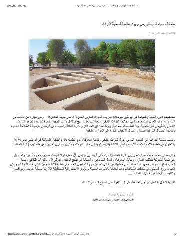9/16/25, 11:09 AM ثارﺗﻟا ﺔﯾﺎﻣﺣﻟ ﺔﯾﻣﻟﺎﻋ دوﮭﺟ ..«ﻲﺑظوﺑأ ﺔﺣﺎﯾﺳو ﺔﻓﺎﻘﺛ» | ﺔﯾﺗارﺎﻣﻹا دﺎﺣﺗﻻا ﺔﻔﯾﺣﺻ
