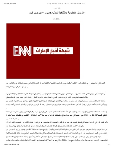 9/17/25, 11:25 AM تارﺎﻣﻹا رﺎﺑﺧأ ﺔﻛﺑﺷ - "ردﺑﻟا نﺎﺟرﮭﻣ" روﮭﻣﺟ بذﺟﺗ ﺔﯾﻓﺎﻘﺛﻟاو ﺔﯾﻣﯾﻠﻌﺗﻟا شروﻟا