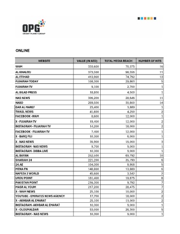 WEBSITE VALUE (IN AED) TOTAL MEDIA REACH NUMBER OF HITS