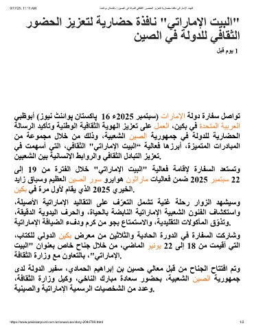 9/17/25, 11:11 AM ٹﻧﺋاوﺑ نﺎﺗﺳﮐﺎﺑ | نﯾﺻﻟا ﻲﻓ ﺔﻟودﻠﻟ ﻲﻓﺎﻘﺛﻟا روﺿﺣﻟا زﯾزﻌﺗﻟ ﺔﯾرﺎﺿﺣ ةذﻓﺎﻧ ﻲﺗارﺎﻣﻹا تﯾﺑﻟا
