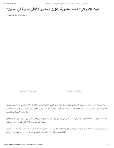 9/17/25, 11:10 AM “مﻼﺳﻟا ﺔﻟﺎﺳر – نﯾﺻﻟا ﻲﻓ ﺔﻟودﻠﻟ ﻲﻓﺎﻘﺛﻟا روﺿﺣﻟا زﯾزﻌﺗﻟ ﺔﯾرﺎﺿﺣ ةذﻓﺎﻧ ”ﻲﺗارﺎﻣﻹا تﯾﺑﻟا