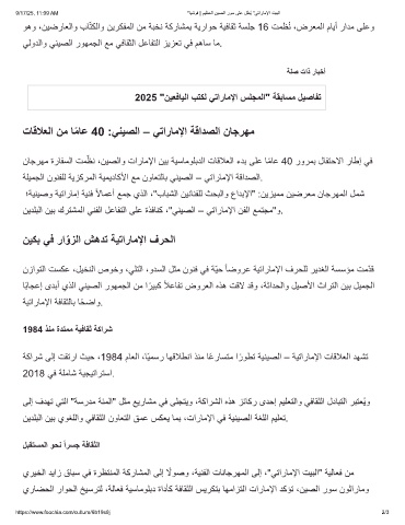 تﺎﻗﻼﻌﻟا نﻣ ﺎﻣﺎﻋ 40 :ﻲﻧﯾﺻﻟا – ﻲﺗارﺎﻣﻹا ﺔﻗادﺻﻟا نﺎﺟرﮭﻣ