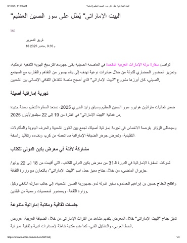 9/17/25, 11:09 AM "ﺎﯾﺷوﻓ | مﯾظﻌﻟا نﯾﺻﻟا روﺳ ﻰﻠﻋ لطُﯾ "ﻲﺗارﺎﻣﻹا تﯾﺑﻟا