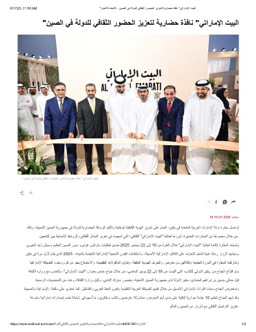9/17/25, 11:08 AM "رﺎﺑﺧﻸﻟ دﺎﺣﺗﻻا - نﯾﺻﻟا ﻲﻓ ﺔﻟودﻠﻟ ﻲﻓﺎﻘﺛﻟا روﺿﺣﻟا زﯾزﻌﺗﻟ ﺔﯾرﺎﺿﺣ ةذﻓﺎﻧ "ﻲﺗارﺎﻣﻹا تﯾﺑﻟا