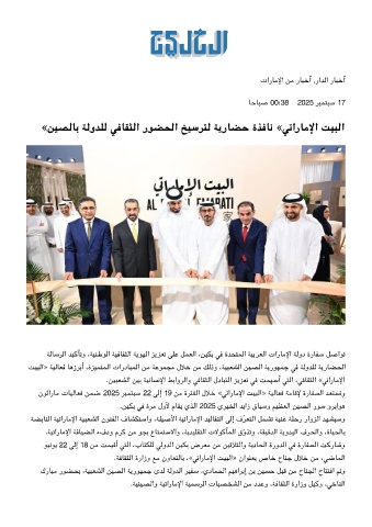 «ﻦﻴﺼﻟﺎﺑ ﺔﻟوﺪﻠﻟ ﻓﺎﻘﺜﻟا رﻮﻀﺤﻟا ﺦﻴﺳﺮﺘﻟ ﺔﻳرﺎﻀﺣ ةﺬﻓﺎﻧ «ﺗارﺎﻣﻹا ﺖﻴﺒﻟا