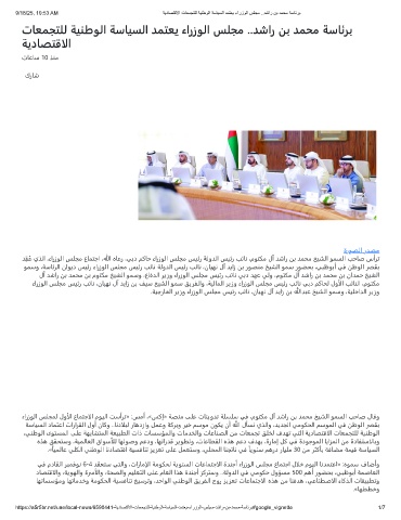 9/18/25, 10:53 AM ﺔﯾدﺎﺻﺗﻗﻻا تﺎﻌﻣﺟﺗﻠﻟ ﺔﯾﻧطوﻟا ﺔﺳﺎﯾﺳﻟا دﻣﺗﻌﯾ ءارزوﻟا سﻠﺟﻣ ..دﺷار نﺑ دﻣﺣﻣ ﺔﺳﺎﺋرﺑ