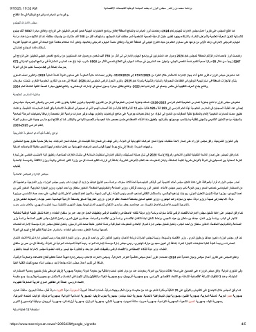 يوﻧﺳﻟا فﺻﻧ رﯾرﻘﺗﻟاو ،2024 ﺔﯾﻟﺎﻣﻟا ﺔﻧﺳﻠﻟ ﺔﻟودﻟا ىوﺗﺳﻣ ﻰﻠﻋ ﺔﻣوﻛﺣﻟا ﺔﯾﻟﺎﻣ تاءﺎﺻﺣإ رﯾرﻘﺗو ،31/03/2025 ﻰﻟإ 01/01/2025 نﻣ ةرﺗﻔﻟا لﻼﺧ رﺎﻣﺛﺗﺳﻼﻟ تارﺎﻣﻹا زﺎﮭﺟ ءادأ ﺞﺋﺎﺗﻧ رﯾرﻘﺗ ءارزوﻟا سﻠﺟﻣ ضرﻌﺗﺳا ﺎﻣﻛ