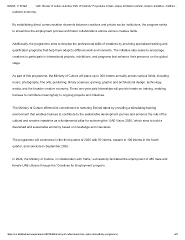 https://en.aletihad.ae/news/culture/4607249/ministry-of-culture-launches--path-of-creativity--programme 2/2