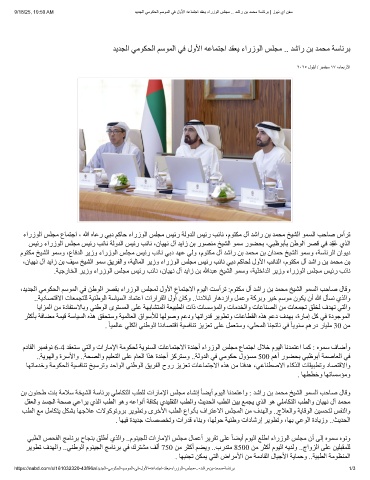 ﺪﯾﺪﺠﻟا ﻲﻣﻮﻜﺤﻟا ﻢﺳﻮﻤﻟا ﻲﻓ لوﻷا ﮫﻋﺎﻤﺘﺟا ﺪﻘﻌﯾ ءارزﻮﻟا ﺲﻠﺠﻣ .. ﺪﺷار ﻦﺑ ﺪﻤﺤﻣ ﺔﺳﺎﺋﺮﺑ