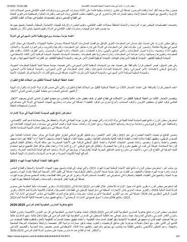 صﺎﺨﻟا عﺎﻄﻘﻟاو ﺔﯿﻠﺤﻤﻟاو ﺔﯾدﺎﺤﺗﻻا تﺎﮭﺠﻟا دﻮﮭﺟ ﻖﯿﺴﻨﺗو ةدﺎﯿﻗ ﻰﻟإ فﺪﮭﺗ ﻲﺘﻟاو ،2031 ءاﻮﮭﻟا ةدﻮﺠﻟ ﺔﯿﻨطﻮﻟا ةﺪﻨﺟﻷا ﺬﯿﻔﻨﺗ ﺞﺋﺎﺘﻧ ءارزﻮﻟا ﺲﻠﺠﻣ ضﺮﻌﺘﺳا ،ﺮﺧآ ﺐﻧﺎﺟ ﻦﻣ