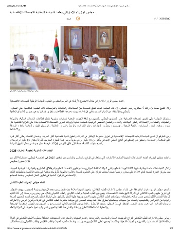 9/18/25, 10:45 AM ﺔﯾدﺎﺻﺗﻗﻻا تﺎﻌﻣﺟﺗﻠﻟ ﺔﯾﻧطوﻟا ﺔﺳﺎﯾﺳﻟا دﻣﺗﻌﯾ ﻲﺗارﺎﻣﻹا ءارزوﻟا سﻠﺟﻣ