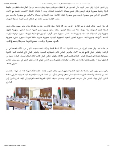 تﻠمﺷ ،ﺔيﻟود تﺎﻬﺟو مﻟﺎﻌﻟا لودو تﺎﻣوكﺣ نﻣ ددﻋ ﻊﻣ مﻫﺎﻔﺗ ةركذﻣو ﺔيقﺎﻔﺗا 76 ﻰﻠﻋ ﻊيقوتﻟاو ضوﺎﻔتﻟا ﻰﻠﻋ عﺎمتﺟﻻا لﻼﺧ سﻠجمﻟا قﻓاو ﺎمﻛ