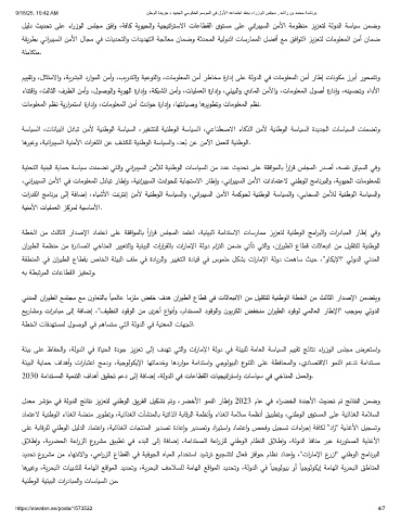 ﻞيﻟد ثﯾدحﺗ ﻰﻠﻋ ءارزوﻟا سﻠجﻣ قﻓاو ،ﺔﻓﺎك ﺔيويحﻟاو ﺔيجيﺗارتﺳﻻا تﺎﻋﺎطﻘﻟا ى وتسﻣ ﻰﻠﻋ ﻲﻧاربيسﻟا نﻣﻷا ﺔﻣوظنﻣ زيزﻌتﻟ ﺔﻟودﻟا ﺔﺳﺎيﺳ نمﺿو