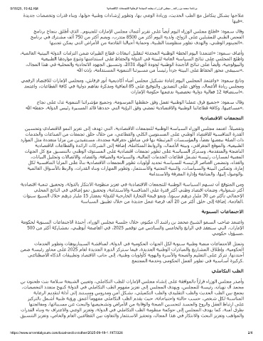 ﷲ ﻪﻈﻔﺣ ،ﺔﻟوﺪﻟا ﺲﯿﺋر ةﺮﯿﺴﻤﻟا ﺪﺋﺎﻗ ﺎھدﺪﺣ ﻲﺘﻟا ﺔﻳؤﺮﻟا ﻖﻓو ﻲﻀﻤﺗ ﺔﻳدﺎﺼﺘﻗﻻاو ﺔﯿﻨطﻮﻟا ﺎﻨﺗﺎﻋﺎﻄﻗ ﺔﻓﺎﻛو ،ﺎﮫﯿﻋﺎﺴﻣ».