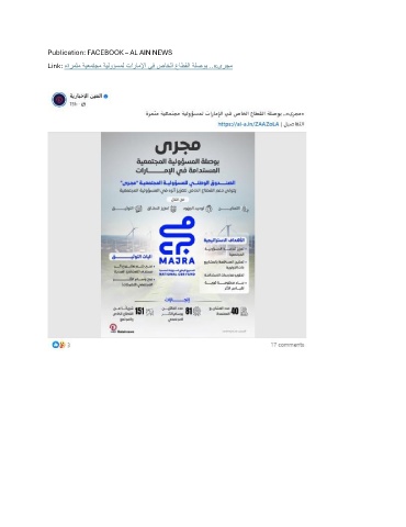 Publication: FACEBOOK – AL AIN NEWS Link: «ةرمثم ةيعمتجم ةيلوؤسمل تاراملإا يف صاخلا عاطقلا ةلصوب ..»ىرجم