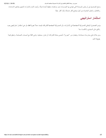 دوﻌﯾ ﻲﺟﯾﺗارﺗﺳا رﺎﻣﺛﺗﺳا ﻲھ لﺑ ،طﻘﻓ ً ﺎﯾرﯾﺧ ًﻼﻣﻋ تﺳﯾﻟ تﺎﻛرﺷﻠﻟ ﺔﯾﻌﻣﺗﺟﻣﻟا ﺔﯾﻟوؤﺳﻣﻟا نﺄﺑ ،تارﺎﻣﻹا ﻲﻓ ﺔﯾﻌﻣﺗﺟﻣﻟا ﺔﯾﻟوؤﺳﻣﻠﻟ ﻲﻧطوﻟا قودﻧﺻﻟا نﻣؤﯾ