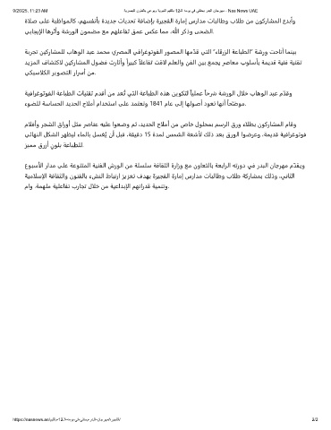 9/26/25, 11:23 AM ﺔﯾرﺻﺑﻟا نوﻧﻔﻟﺎﺑ ﻲﻋوﯾو ﺔﯾوﺑﻧﻟا مﯾﻘﻟﺎﺑ 12ـﻟا ﮫﻣوﯾ ﻲﻓ ﻲﻔﺗﺣﯾ ردﺑﻟا نﺎﺟرﮭﻣ - Nas News UAE