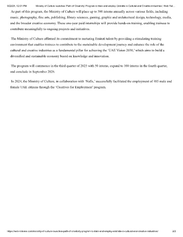 9/22/25, 12:01 PM Ministry of Culture launches ‘Path of Creativity’ Program to train and employ Emiratis in Cultural and Creative industries | Web Rel…