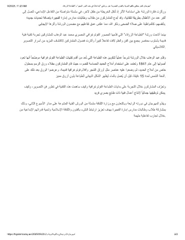 نﻣ ﺔﯾﻋادﺑﻹا مﮭﺗاردﻗ ﺔﯾﻣﻧﺗو ﺔﯾﻣﻼﺳﻹا ﺔﻓﺎﻘﺛﻟاو نوﻧﻔﻟﺎﺑ ءشﻧﻟا طﺎﺑﺗرا زﯾزﻌﺗ فدﮭﺑ ةرﯾﺟﻔﻟا ةرﺎﻣإ سرادﻣ تﺎﺑﻟﺎطو بﻼط ﺔﻛرﺎﺷﻣﺑ