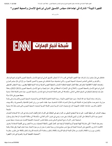 9/26/25, 11:28 AM "تارﺎﻣﻹا رﺎﺑﺧأ ﺔﻛﺑﺷ - يوﯾﺣﻟا طﯾﺣﻣﻟاو نﺎﺳﻧﻹا ﺞﻣﺎﻧرﺑﻟ ﻲﻟودﻟا ﻖﯾﺳﻧﺗﻟا سﻠﺟﻣ تﺎﻋﺎﻣﺗﺟا ﻲﻓ كرﺎﺷﺗ "ﺔﺋﯾﺑﻠﻟ ةرﯾﺟﻔﻟا