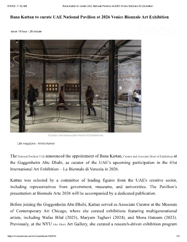 9/30/25, 11:52 AM Bana Kattan to curate UAE National Pavilion at 2026 Venice Biennale Art Exhibition