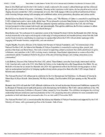https://www.malaysiasun.com/news/278607367/bana-kattan-to-curate-national-pavilion-uae-at-61st-international-art-exhibition-of-la-biennale-di-venezi… 2/2
