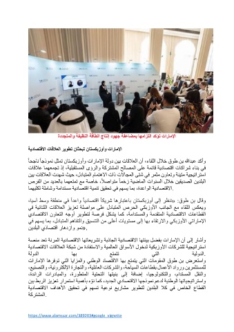 ًﺎﺤﺟﺎﻧ ًﺎﺟذﻮﻤﻧ ﻞﺜﻤﺗ نﺎﺘﺴﻜﺑزوأو تارﺎﻣﻹا ﺔﻟود ﻦﯿﺑ تﺎﻗﻼﻌﻟا نأ ،ءﺎﻘﻠﻟا لﻼﺧ قﻮط ﻦﺑ ﷲﺪﺒﻋ ﺪﻛأو