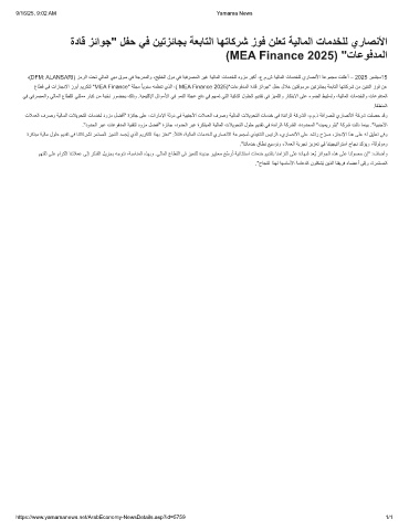 تﻼﻣﻌﻟا فرﺻو ﺔﯾﻟﺎﻣﻟا تﻼﯾوﺣﺗﻟا تﺎﻣدﺧﻟ دوزﻣ لﺿﻓأ" ةزﺋﺎﺟ ﻰﻠﻋ ،تارﺎﻣﻹا ﺔﻟود ﻲﻓ ﺔﯾﺑﻧﺟﻷا تﻼﻣﻌﻟا فرﺻو ﺔﯾﻟﺎﻣﻟا تﻼﯾوﺣﺗﻟا تﺎﻣدﺧ ﻲﻓ ةدﺋارﻟا ﺔﻛرﺷﻟا ،م.م.ذ ﺔﻓارﺻﻠﻟ يرﺎﺻﻧﻷا ﺔﻛرﺷ تﻠﺻﺣ دﻗو