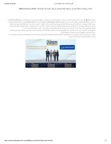 (MEA Finance 2025) "تﺎﻋوﻓدﻣﻟا ةدﺎﻗ زﺋاوﺟ" لﻔﺣ ﻲﻓ نﯾﺗزﺋﺎﺟﺑ ﺔﻌﺑﺎﺗﻟا ﺎﮭﺗﺎﻛرﺷ زوﻓ نﻠﻌﺗ ﺔﯾﻟﺎﻣﻟا تﺎﻣدﺧﻠﻟ يرﺎﺻﻧﻷا