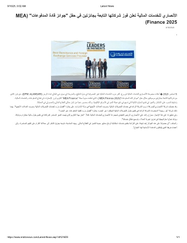 نﯾﺗﻧﺛا زوﻓ نﻋ ،(DFM: ALANSARI) زﻣرﻟا تﺣﺗ ﻲﻟﺎﻣﻟا ﻲﺑد قوﺳ ﻲﻓ ﺔﺟردﻣﻟاو ،ﺞﯾﻠﺧﻟا لود ﻲﻓ ﺔﯾﻓرﺻﻣﻟا رﯾﻏ ﺔﯾﻟﺎﻣﻟا تﺎﻣدﺧﻠﻟ دوزﻣ رﺑﻛأ ،ع.م.ش ﺔﯾﻟﺎﻣﻟا تﺎﻣدﺧﻠﻟ يرﺎﺻﻧﻷا ﺔﻋوﻣﺟﻣ تﻧﻠﻋأ � 2025 رﺑﻣﺗﺑﺳ15
