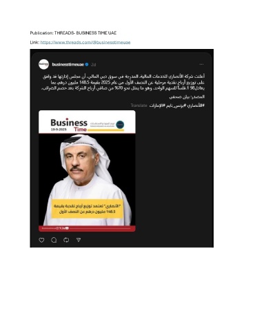 Publication: THREADS- BUSINESS TIME UAE Link: https://www.threads.com/@businesstimeuae
