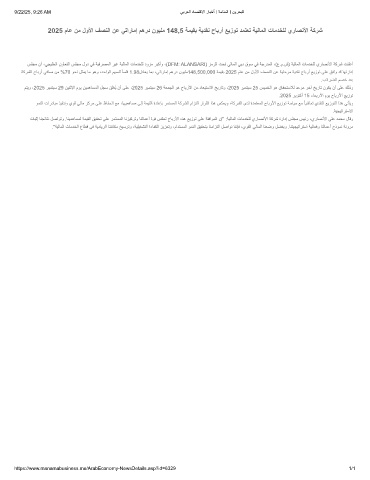 2025 مﺎﻋ نﻣ لوﻷا فﺻﻧﻟا نﻋ ﻲﺗارﺎﻣإ مھرد نوﯾﻠﻣ 148,5 ﺔﻣﯾﻘﺑ ﺔﯾدﻘﻧ حﺎﺑرأ ﻊﯾزوﺗ دﻣﺗﻌﺗ ﺔﯾﻟﺎﻣﻟا تﺎﻣدﺧﻠﻟ يرﺎﺻﻧﻷا ﺔﻛرﺷ