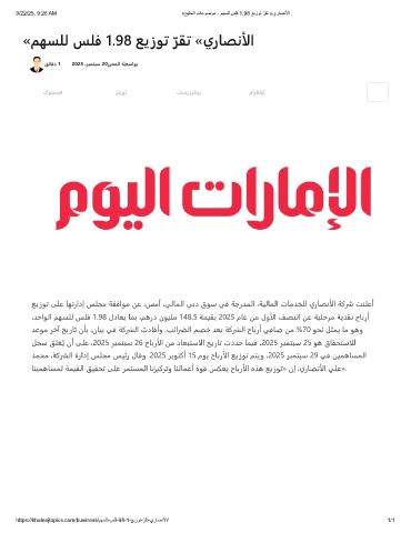 9/22/25, 9:26 AM «ﺞﯾﻠﺧﻟا تﺎﻋوﺿوﻣ - مﮭﺳﻠﻟ سﻠﻓ 1.98 ﻊﯾزوﺗ ّ رﻘﺗ «يرﺎﺻﻧﻷا