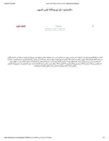 9/22/25, 9:25 AM «مﮭﺳﻠﻟ سﻠﻓ 1.98 ﻊﯾزوﺗ ّ رﻘﺗ «يرﺎﺻﻧﻷا - Bahrainso Highlight