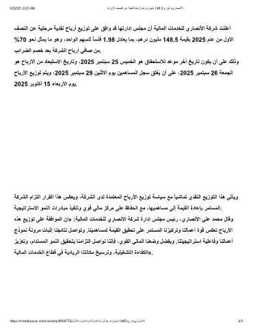 9/22/25, 9:25 AM «لوﻷا فﺻﻧﻟا نﻋ ﺔﯾدﻘﻧ ً ﺎﺣﺎﺑرأ مھرد نوﯾﻠﻣ 148.5 عزوﺗ «يرﺎﺻﻧﻷا