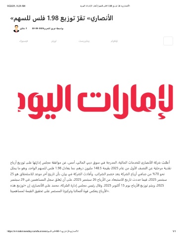 9/22/25, 9:24 AM «موﯾﻟا تارﺎﻣﻹا رﺎﺑﺧأ | مﮭﺳﻠﻟ سﻠﻓ 1.98 ﻊﯾزوﺗ ّ رﻘﺗ «يرﺎﺻﻧﻷا
