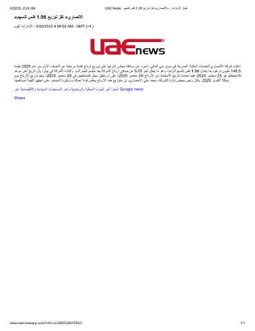 9/22/25, 9:24 AM UAE News - مﮭﺳﻠﻟ سﻠﻓ 1.98 ﻊﯾزوﺗ ّ رﻘﺗ «يرﺎﺻﻧﻷا» - تارﺎﻣﻹا رﺎﺑﺧأ